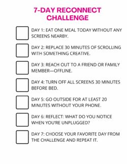 Inside the toolkit, you’ll find conversation starters, quick-start guides, and printable digital wellness challenges designed to meet people where they are. Whether you’re starting a conversation at home, in the classroom, or in the community, these tools are meant to be flexible, hopeful, and immediately useful.